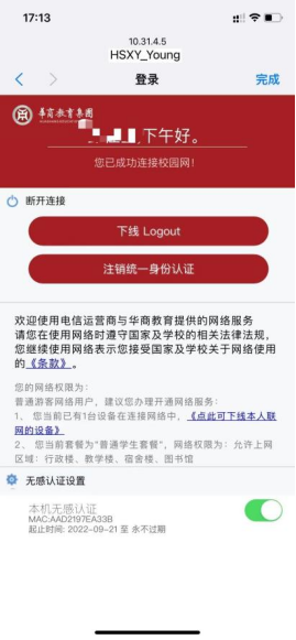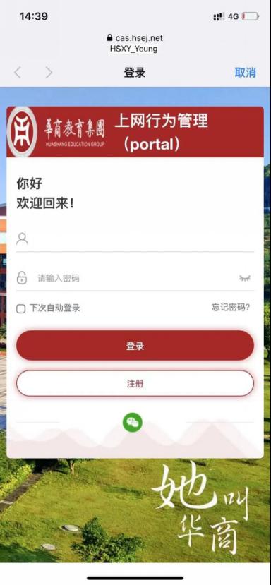 点击“HSXY_Young”连接自动弹出华商e家认证页面输入华商E家账号密码