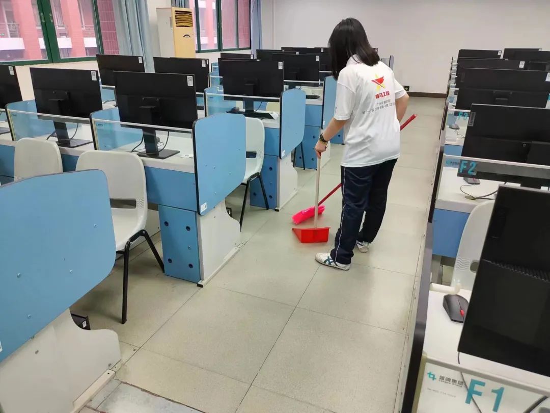 本次活动共有81名志愿者参与,活动开展期间,志愿者们分工明确,相互配合,认真对地面上的垃圾垃圾进行清理。志愿者们积极清扫地板上的垃圾,头发,灰尘等杂物,将卫生死角清扫干净,擦拭桌面,清理地板上的污渍,为师生营造一个良好的课堂环境。